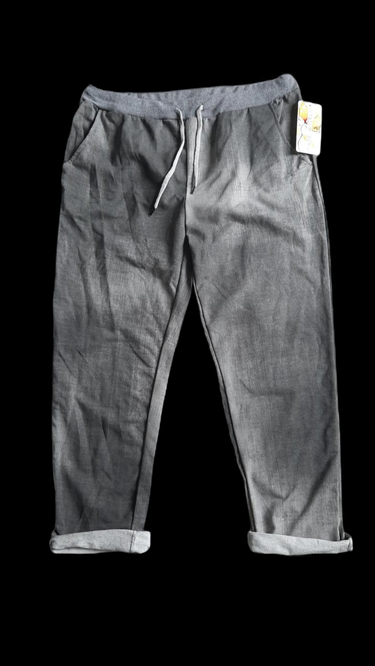 Heerlijke comfy broeken zitten als een dunne joggingbroek. Met een aansnoerkoordje aan de voorkant. Leuk voor in de zomer om de onderkant om te slaan met een slippertje eronder.