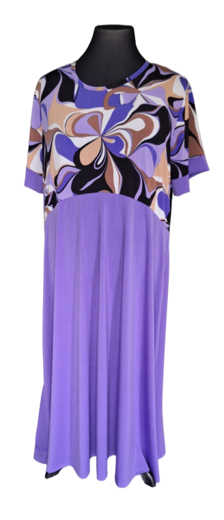 Een lange jurk voor de langere dames onder ons. De bovenkant bewerkt en de onderkant effen van kleur.
