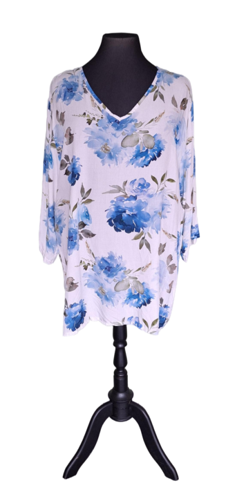 Een lang shirt met een wijde driekwart mouw en een V-hals.
