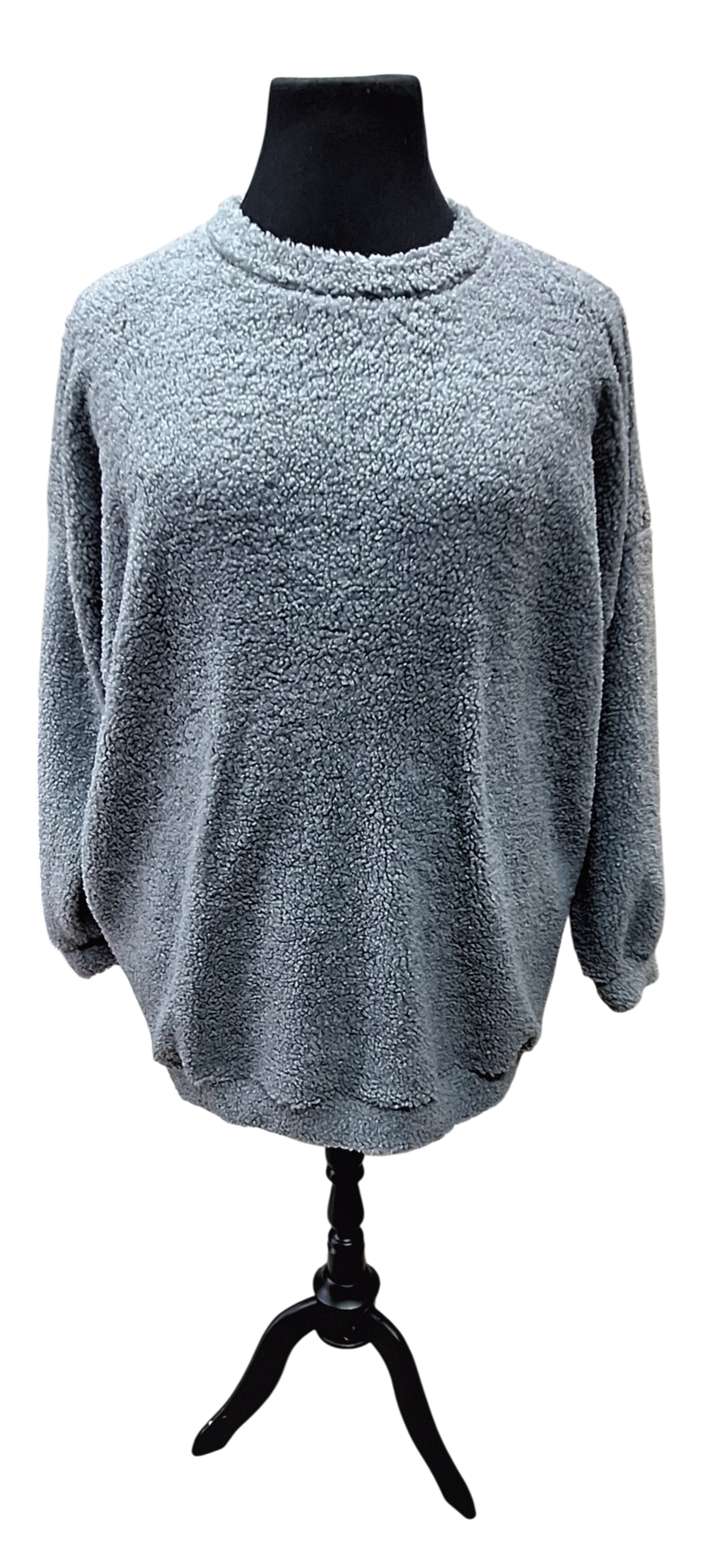 Een heerlijke teddy trui die zacht aanvoelt. Aan de onderkant en bij de mouwen een boord. Deze trui heeft ook twee steekzakken.
